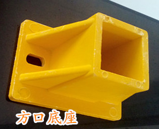 玻璃鋼底座的型號有多種,具體如何選擇需參照實際需求。如比較常用的一種即50*50mm孔徑的底座,當然同時配合使用的玻璃鋼材質的方管和圓管的型號也為50*50mm。